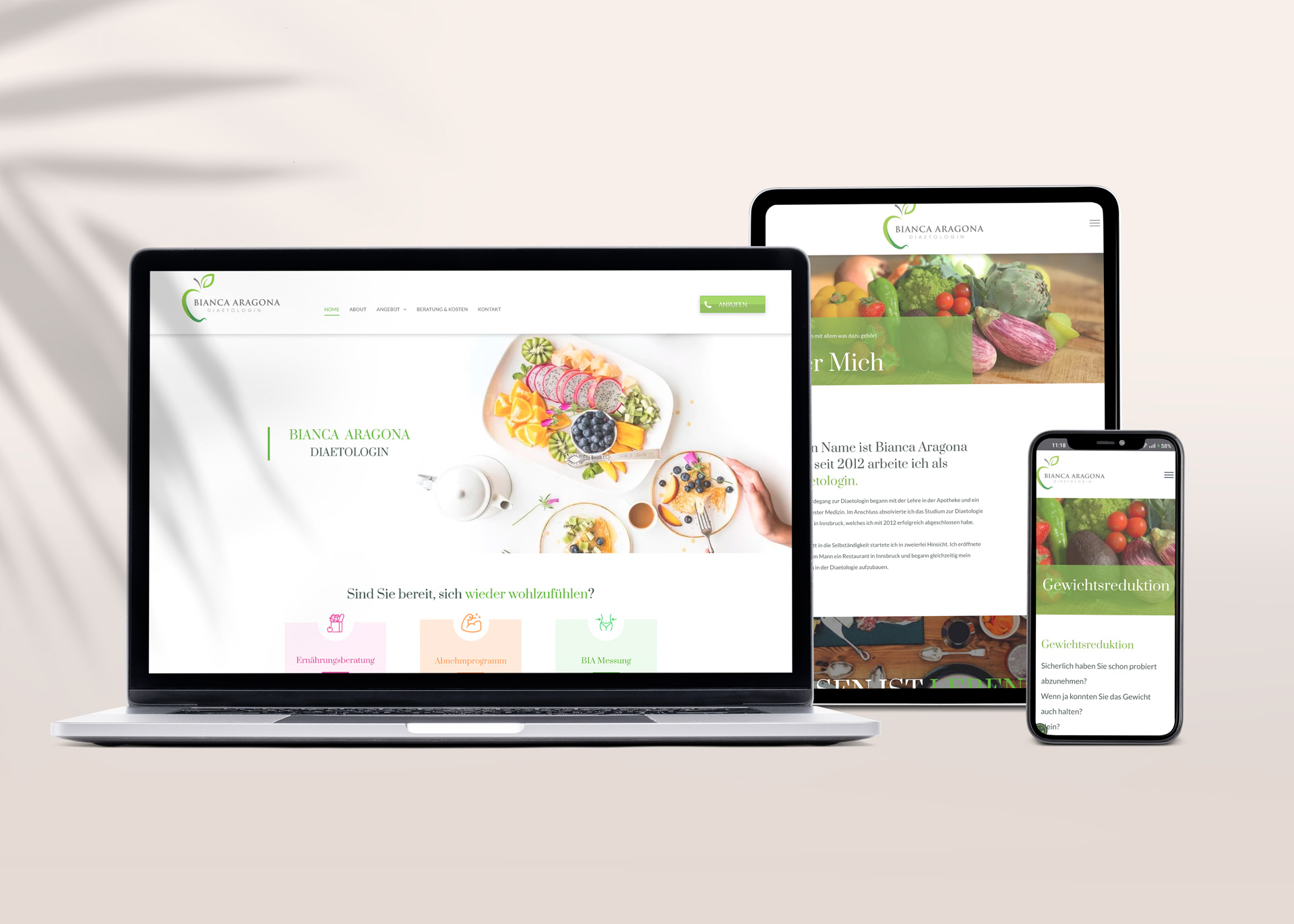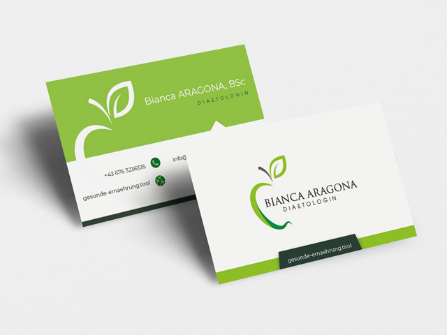 Für Bianca Aragona - Diaetologin aus Tirol durfte ich Logo, Visitenkarte und den Webauftritt entwerfen.